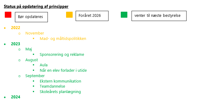 | Punkt 7 | 15 min | Princip Mad & Måltid - opdatering |